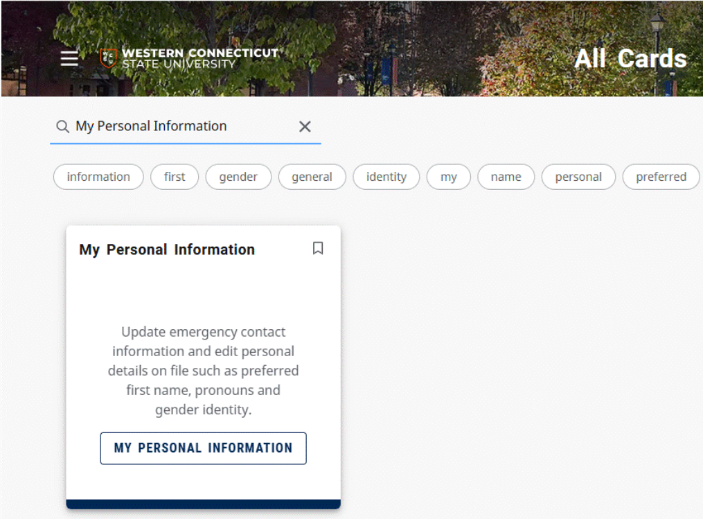 - Enter Personal Information into Find cards to filter to the My Personal Information card