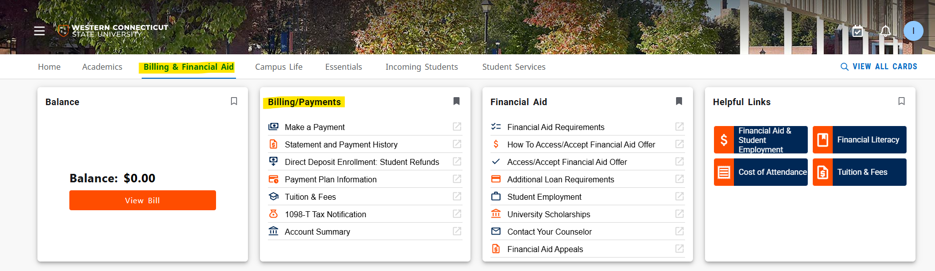 - Click on the Billing & Financial Aid tab at the top. :