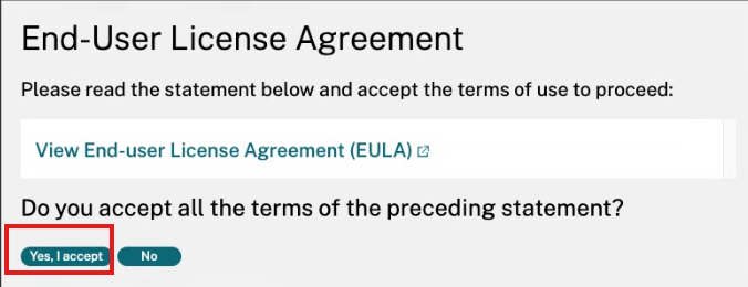 4. Click “Yes I accept” on the End-User License agreement: