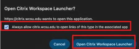 20. Checkmark “Always allows” and then click “Open Citrix Workspace Launcher”: