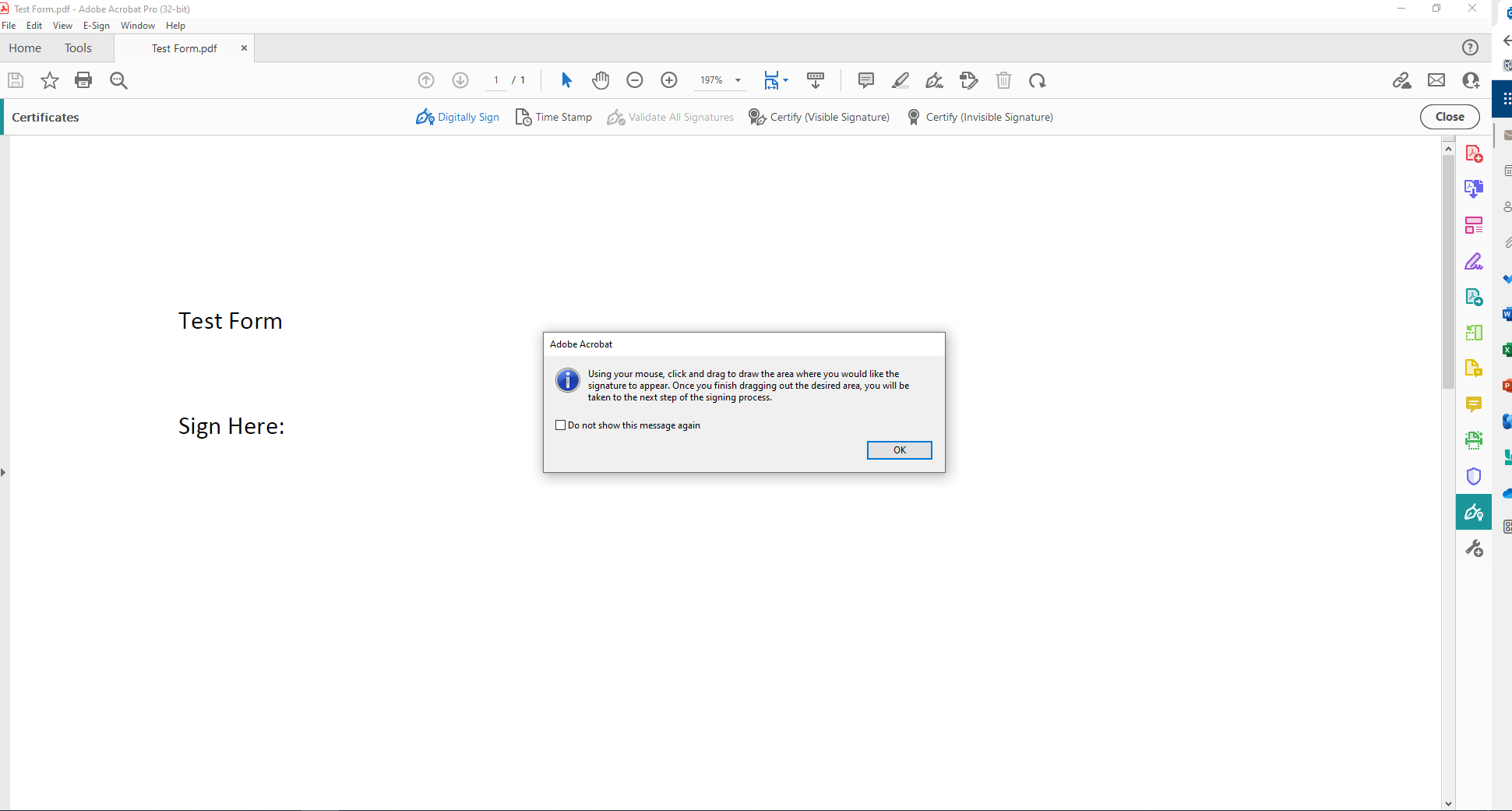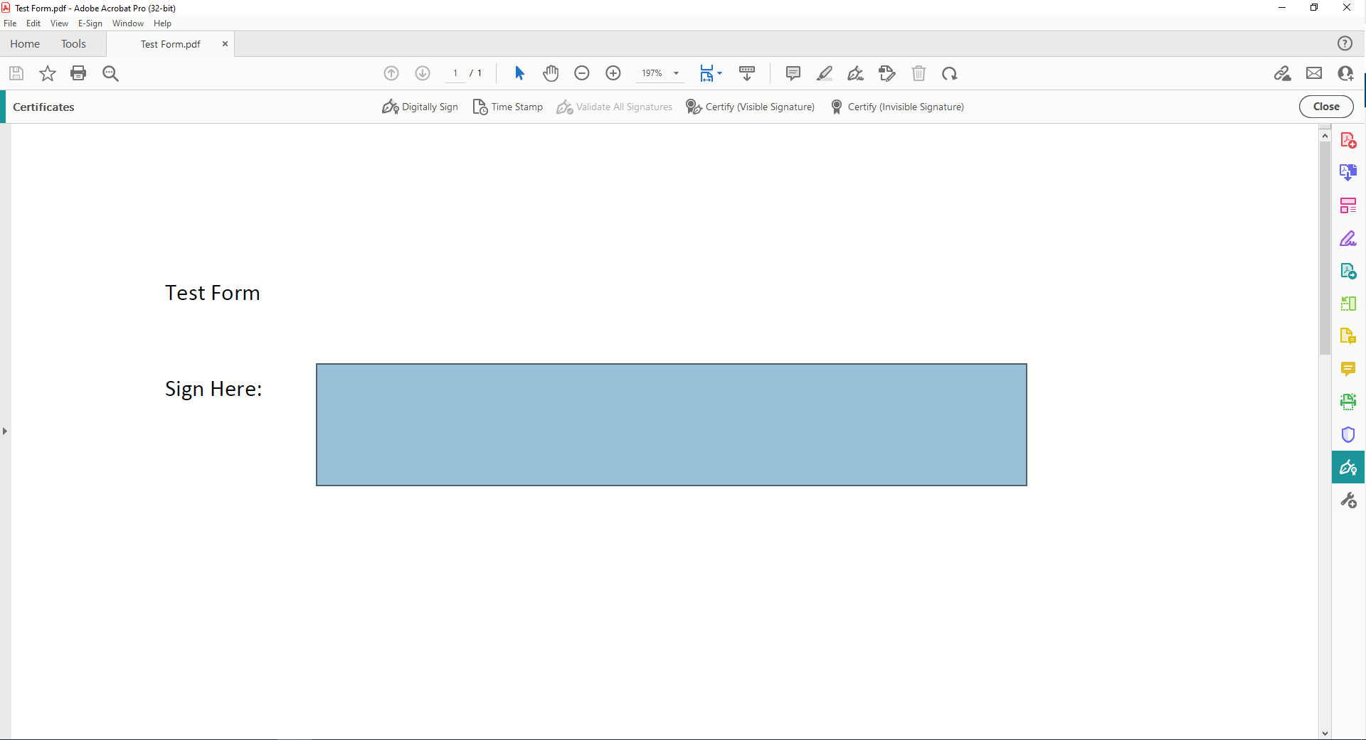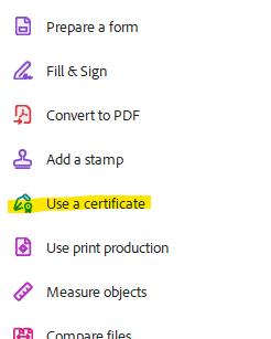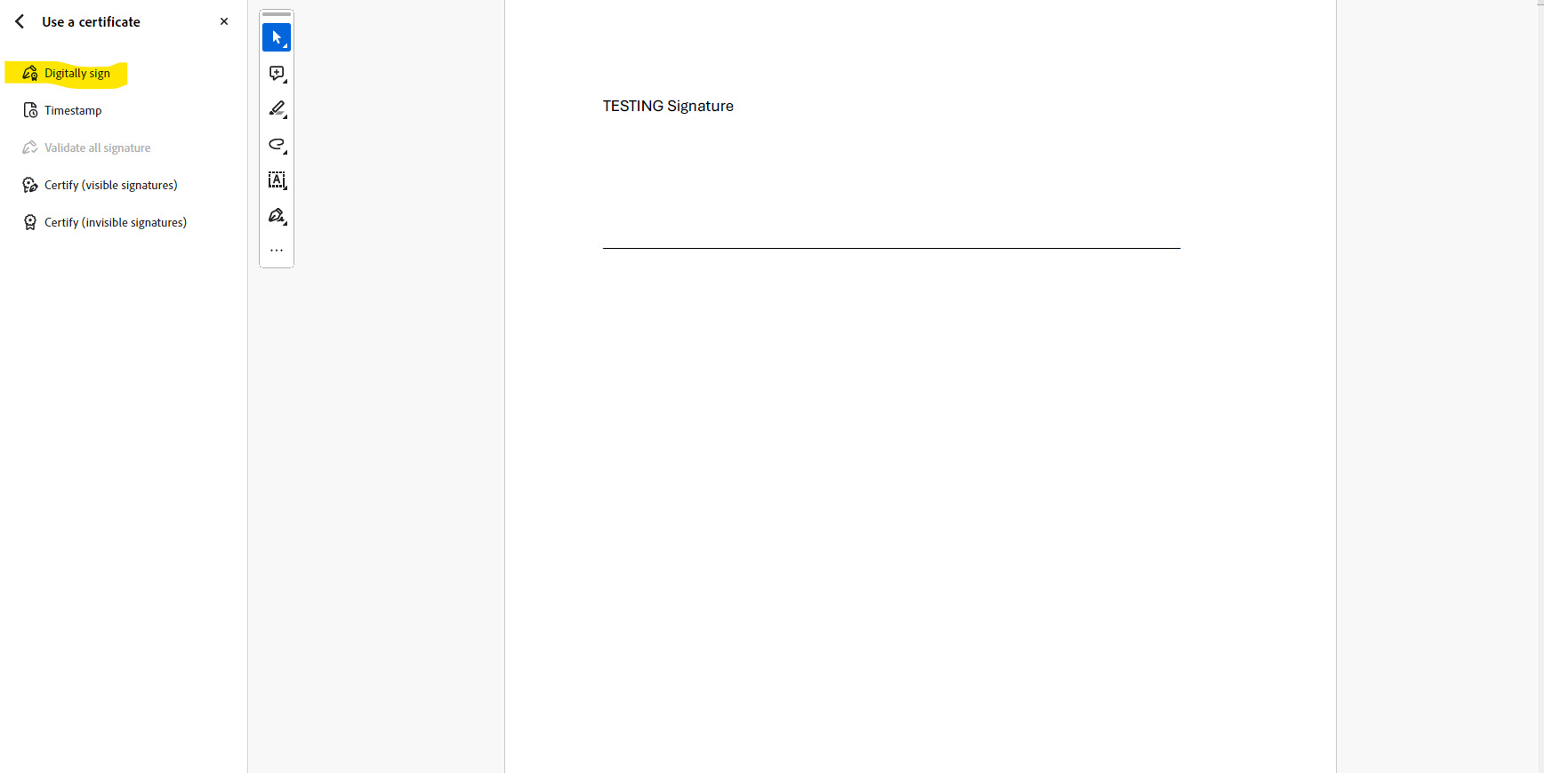 3. Click on the Digitally Sign icon on the far left bar: