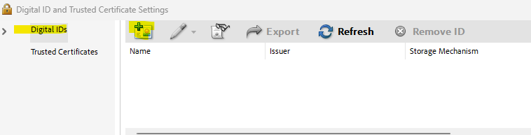 - Highlight Digital IDs and click the blue plus to the right: