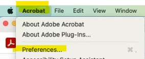 - In Acrobat, click the Acrobat menu and choose Preferences.
