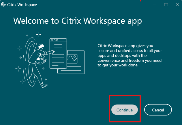 - At the Citrix Welcome screen, click Continue: