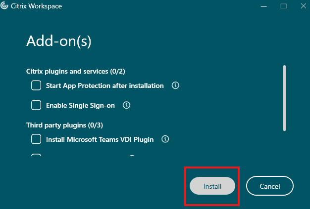 - On the Add-on(s) screen, click Install: